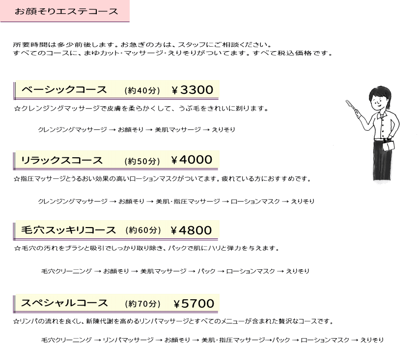長崎市 散髪屋 床屋 理容室 顔そり メンズカット 美容室 レディースシェービング エステ